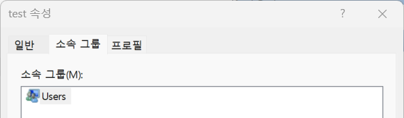test 계정의 속성을 확인해보면 Users 그룹에 분류되어 있는데, 변경 없이 사용
