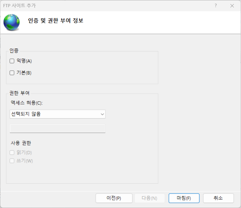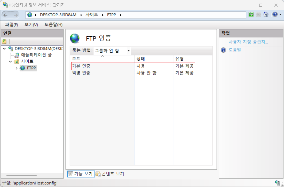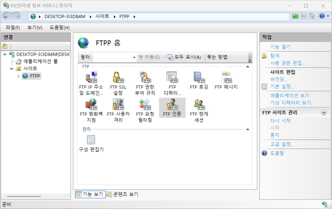 IIS 관리자 > FTP 인증