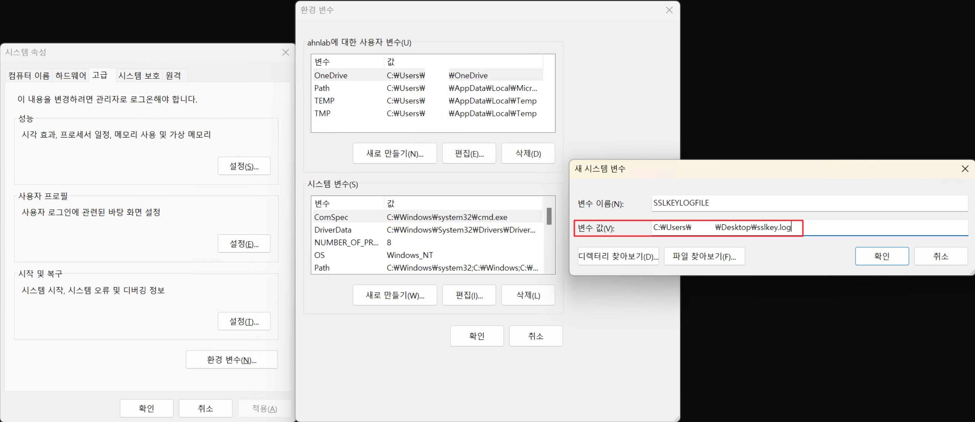변수 값 : C:\Users\<사용자명>\Desktop\sslkey.log